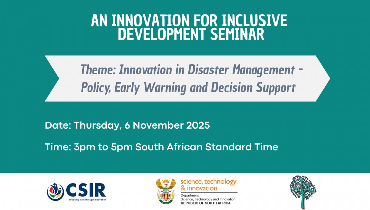 We recently hosted an Innovation for Inclusive Development Seminar in collaboration with the Department of Science, Technology and Innovation (DSTI) as part of the DSTI's Innovation for Inclusive Dvelopment Seminar Series. The online event explored how emerging technologies, data-driven tools, and policy innovations are transforming the way we prepare for, respond to, and recover from disasters. With climate-related risks intensifying and urban vulnerabilities becoming more complex, the discussion highlighted the importance of integrating multi-hazard early warning systems, decision-support platforms, and people-centred approaches into disaster planning and response frameworks.