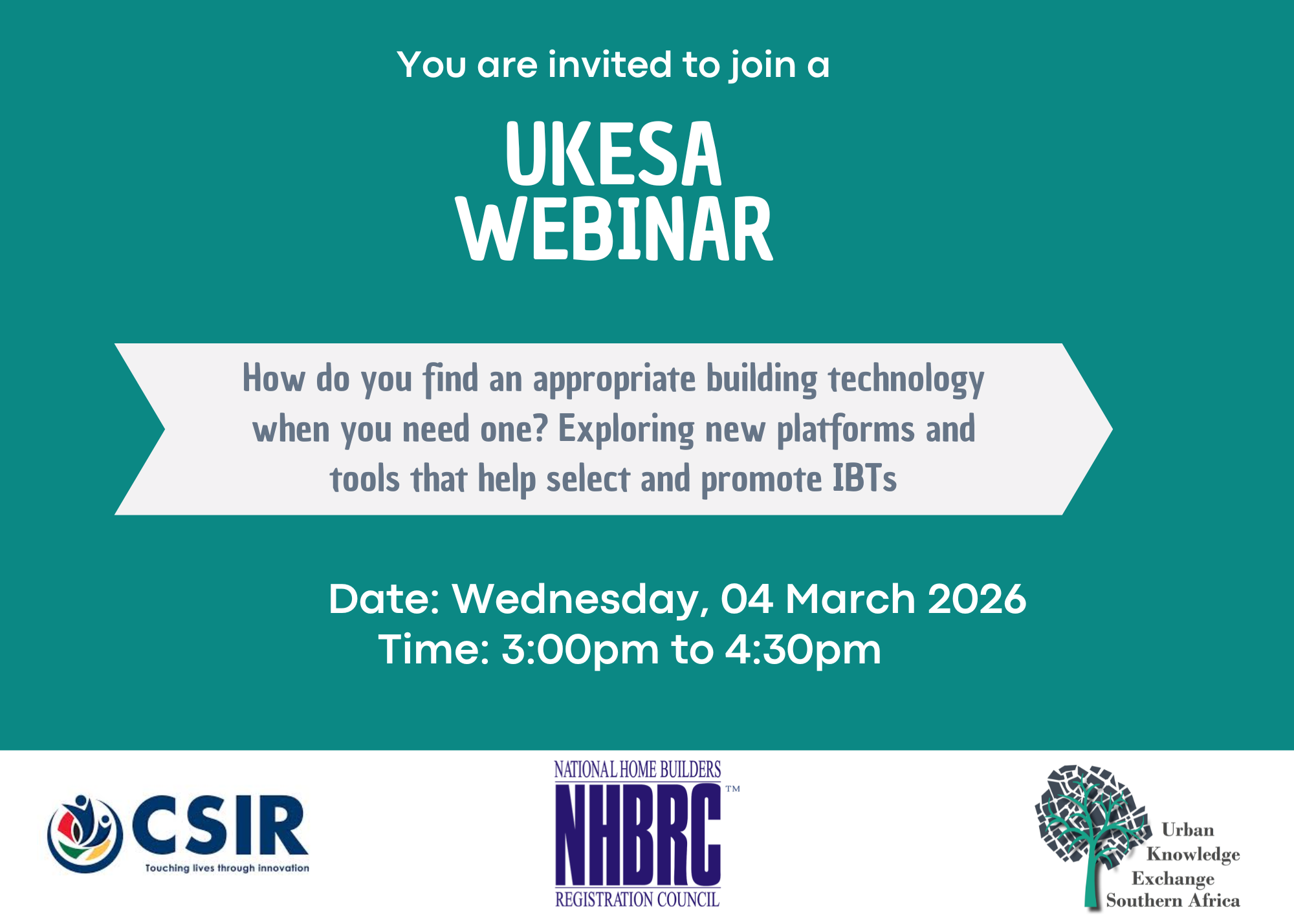 - uKESA Webinar - How Do You Find an Appropriate Building Technology When You Need One? Exploring New Platforms and Tools that Help Select and Promote IBTs - 4 March 2026